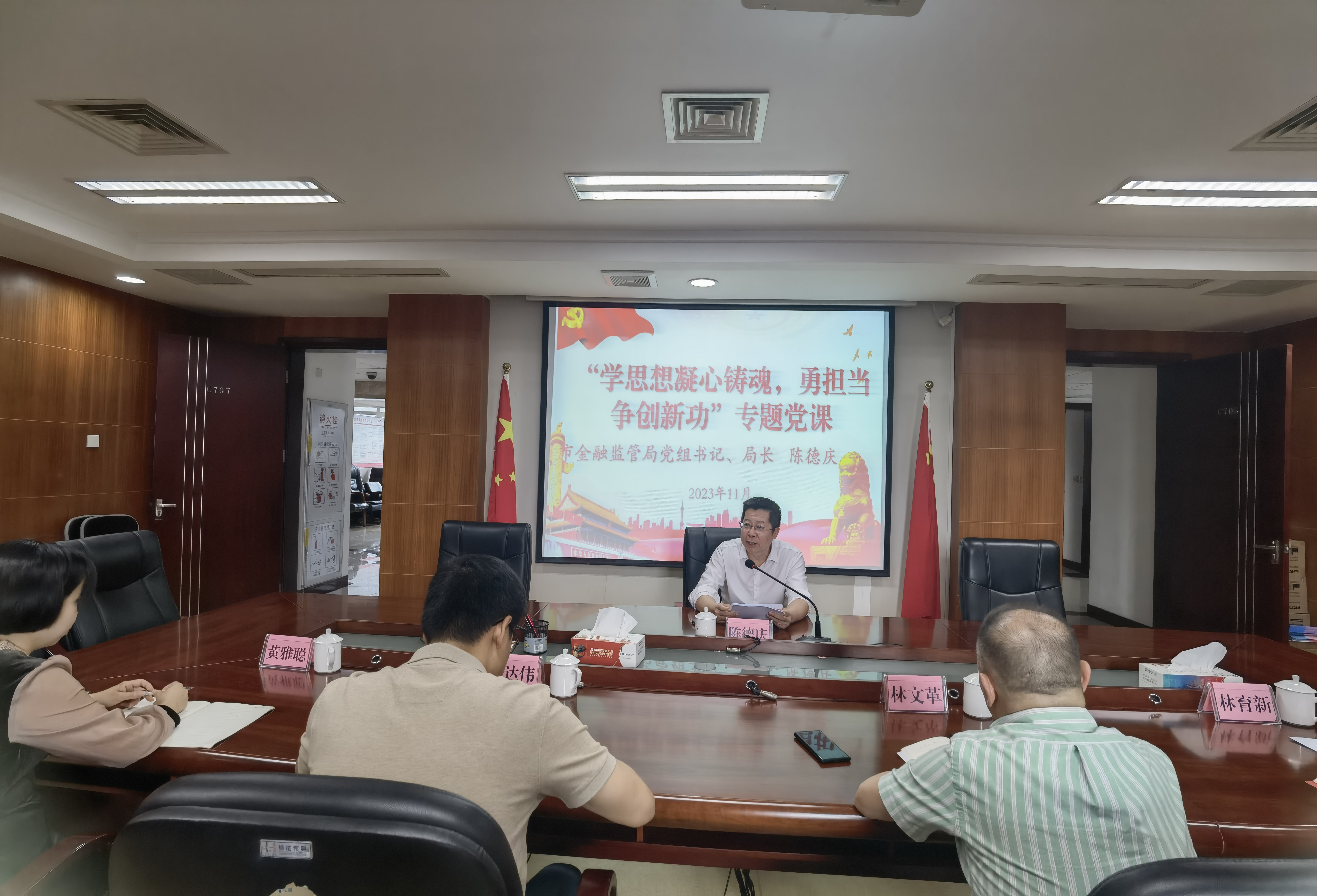 陈德庆同志指出,全局党员干部要紧跟习近平总书记的脚步,紧紧围绕新时代新征程党的中心任务,聚焦中央金融工作会议“加快建设金融强国,全面加强金融监管,完善金融体制,优化金融服务,防范化解风险,坚定不移走中国特色金融发展之路,推动我国金融高质量发展,为以中国式现代化全面推进强国建设、民族复兴伟业提供有力支撑”部署要求,真抓实干、务求实效,聚焦问题、知难而进,以时时放心不下的责任感、积极担当作为的精气神为党和人民履好职、尽好责,以新时代新气象新作为推动金融高质量发展取得新成效。